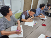 2023년 10월 문해교육 < 영상을 보며 수어를 배운다. > - 동영상을 시청하며 수어를 배운다. - 배운 수어를 공책에 필기하며 익힌다. < 지난주 단어 > - 학교, 유치원, 초등학교, 중학교, 고등학교, 대학교, 대학원 <...
