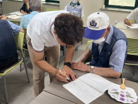 2023년 8월 문해교육 < 영상을 보며 수어를 배운다. > - 동영상을 시청하며 수어를 배운다. - 배운 수어를 공책에 필기하며 익힌다. < 지난주 단어 > - 싱겁다 삼키다 토하다 많다 적다 배고프다 배부르다 맛있다 맛...