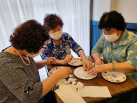 1월 토탈공예 린넨바구니 여러 가지 용도로 사용할 수 있는 다목적 린넨 바구니 예쁜 꽃문양의 스킨을 서로 많이 붙이겠다고 꽃이 찢어지는지도 모르고 열심히 붙이시는 어르신들 보석십자수 보석알을 하나하나 수작...