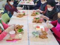 1월 푸드테라피 어르신들에게 제일 인기가 좋은 푸드테라피 수업입니다. 단호박 인절미 크로와상 샌드위치 쌀강정